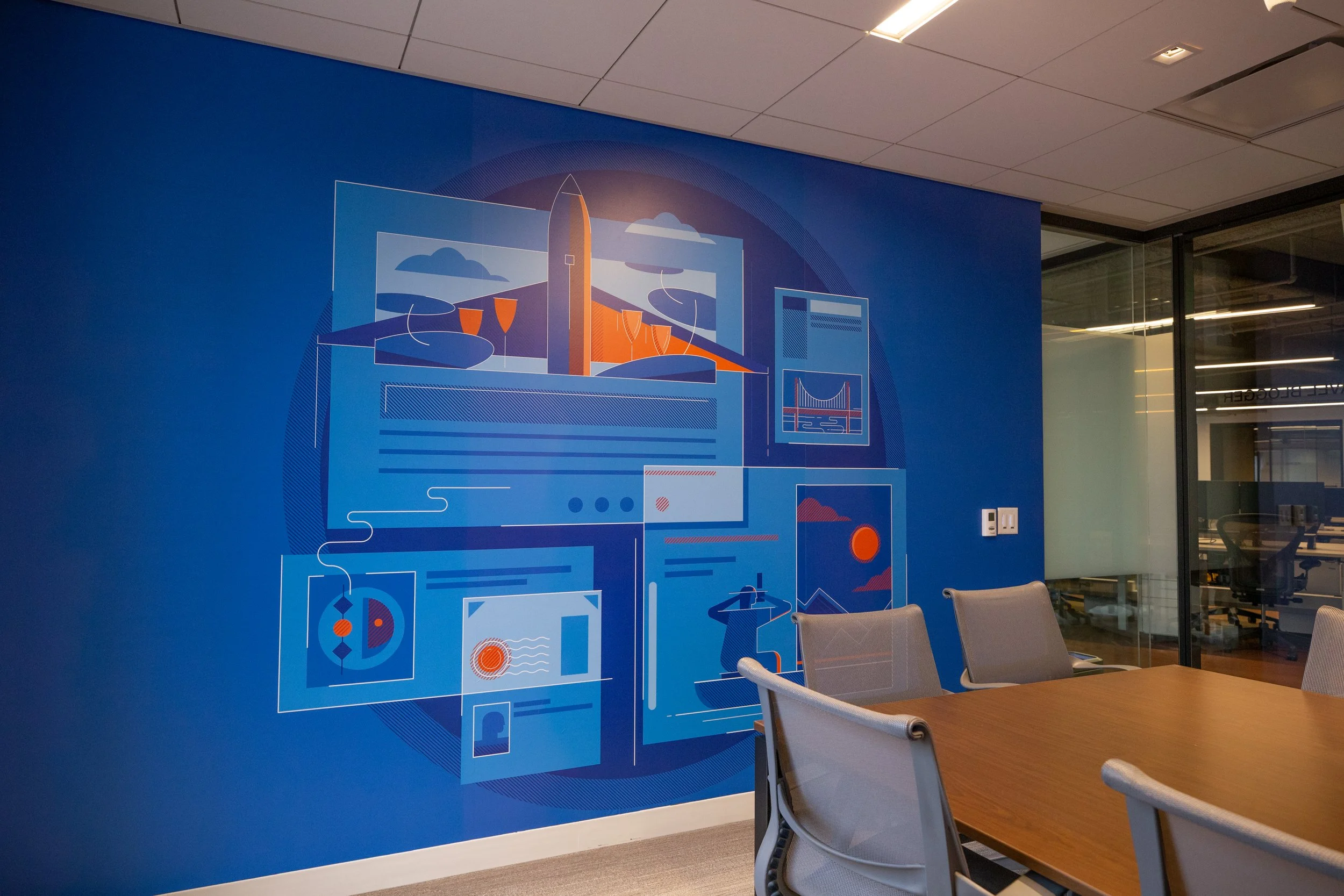 Indeed’s global offices are hubs of creativity and serve as a hyper-local and hyper-global space. My team worked closely with the real estate team to design color palettes, cozy finishes, and large-scale, aspirational immersive illustrations throughout for our 30+ global office spaces.